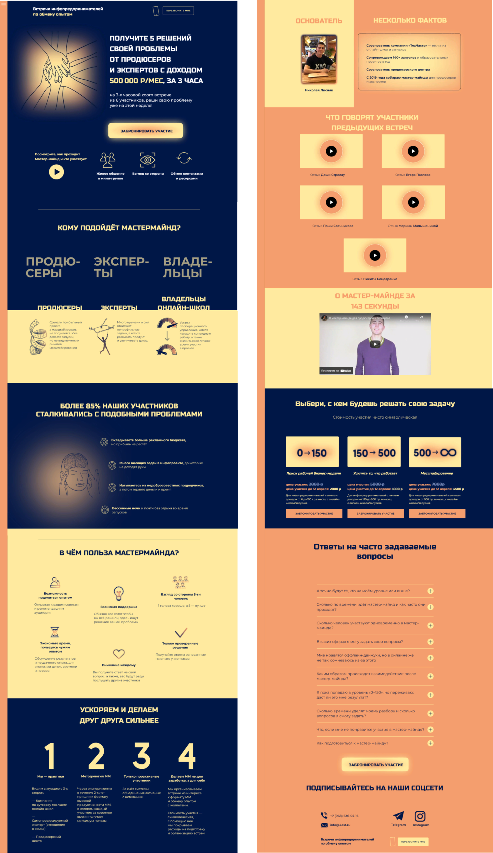 Николай Лисняк— основатель офлайн мастермайнда, на котором собирались эксперты из различных сфер, они проводили свои встречи в деловом центре «Москва-Сити». После удачных попыток Коля решил организовать свою деятельность в онлайне и собирать людей через старые контакты с помощью лендинга.