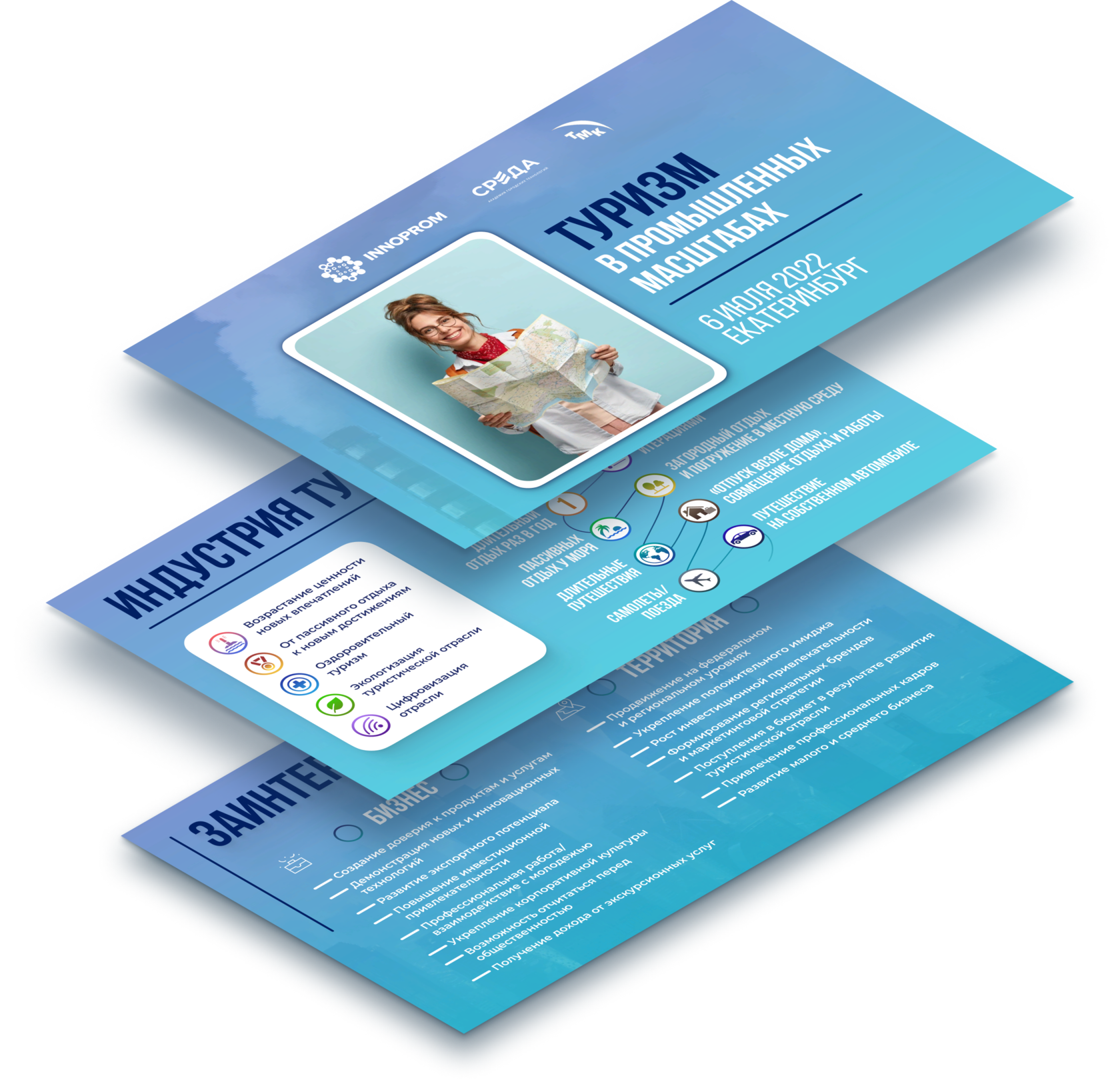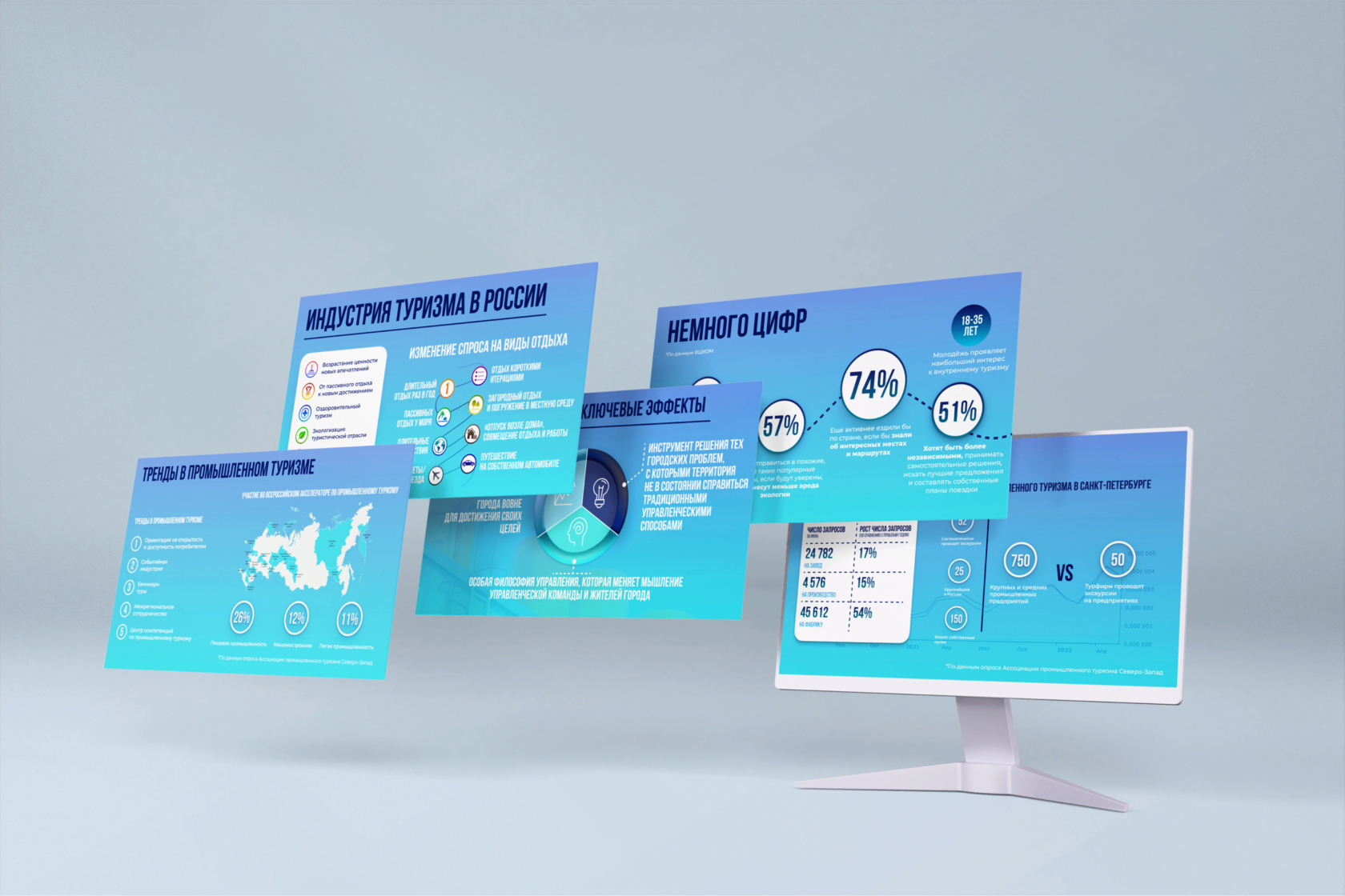 По цветам мы решили остановиться на синих оттенках, так как промышленность ассоциируется с синим цветом, но сохраняя яркость, поэтому в цветовой палитре нет серости.